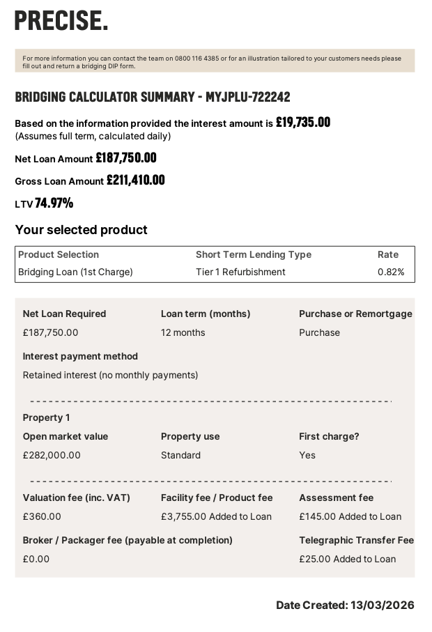 Using the attached lending illustration (75% Gross Retained Bridging Facility), here is how the finance integrates with your project.