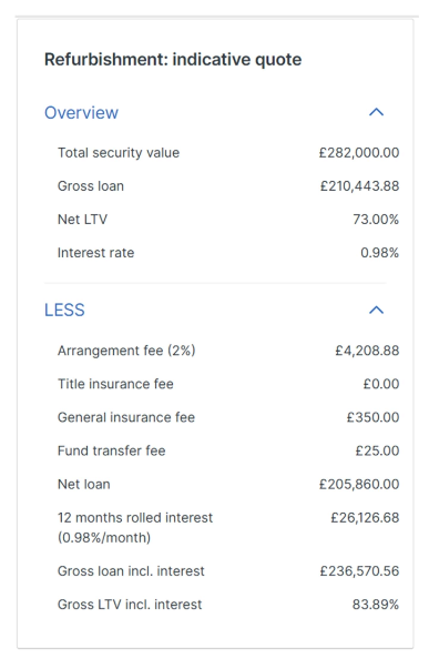 Net loan advanced to you at completion: £205,860.00 (arrangement/other fees deducted; interest is retained/rolled)